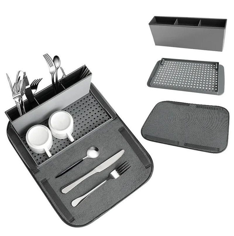 سجادة التنشيف المتكاملة دي مش مجرد مفرش… دي نظام تنشيف كامل للمواعين، الأكواب، المعالق والسكاكين.