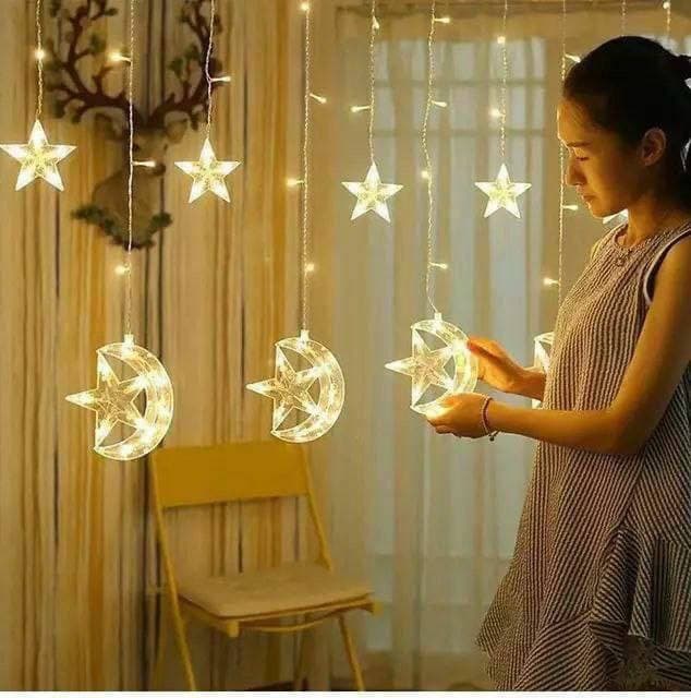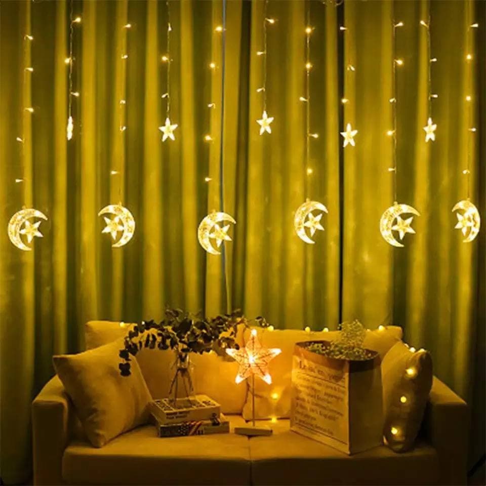 ستارة الإضاءة المضيئة بالنجوم والهلال بتدي شكل راقي ومميز للبيت، مناسبة للغرف، الريسبشن، البلكونة، أو حتى ديكور المناسبات.