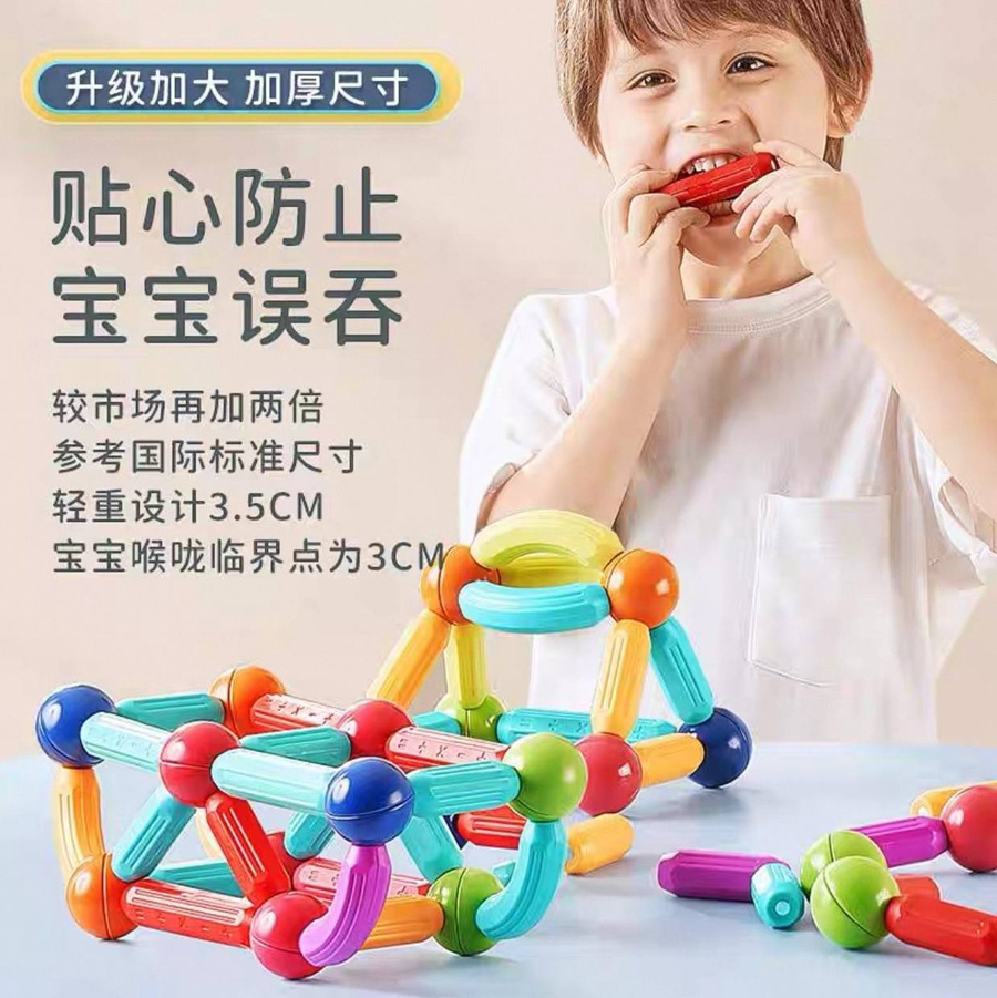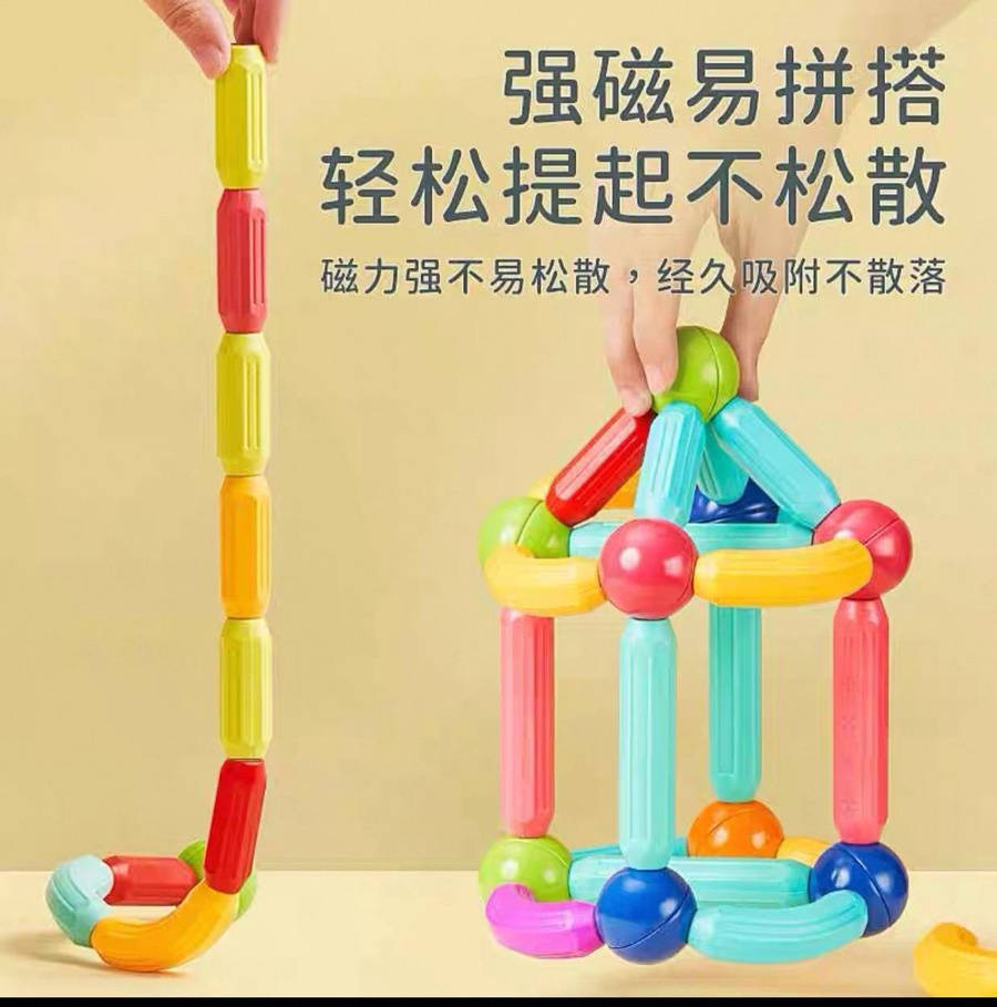 لعبة مغناطيس مبتكرة بتساعد طفلك يبدع ويكوّن أشكال ومجسمات مختلفة بسهولة، وفي نفس الوقت بتنمّي مهاراته العقلية والحركية بشكل آمن وممتع.