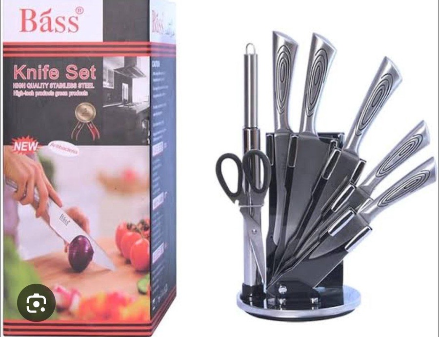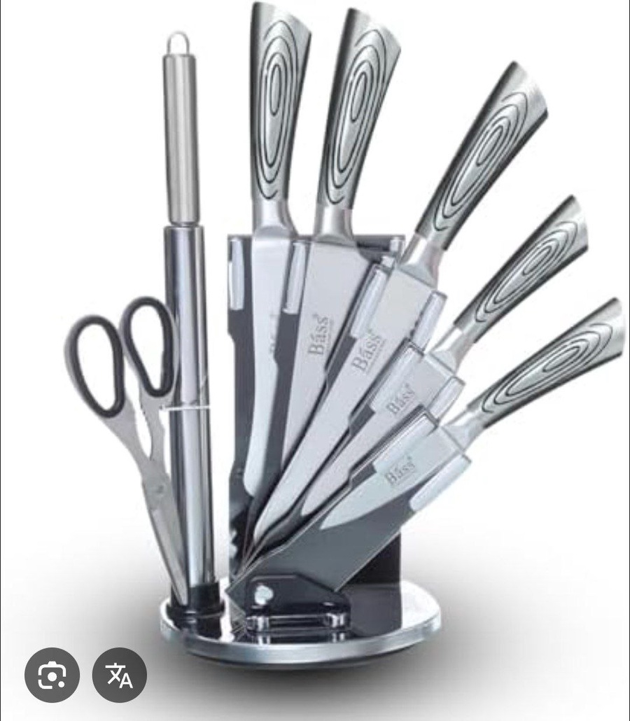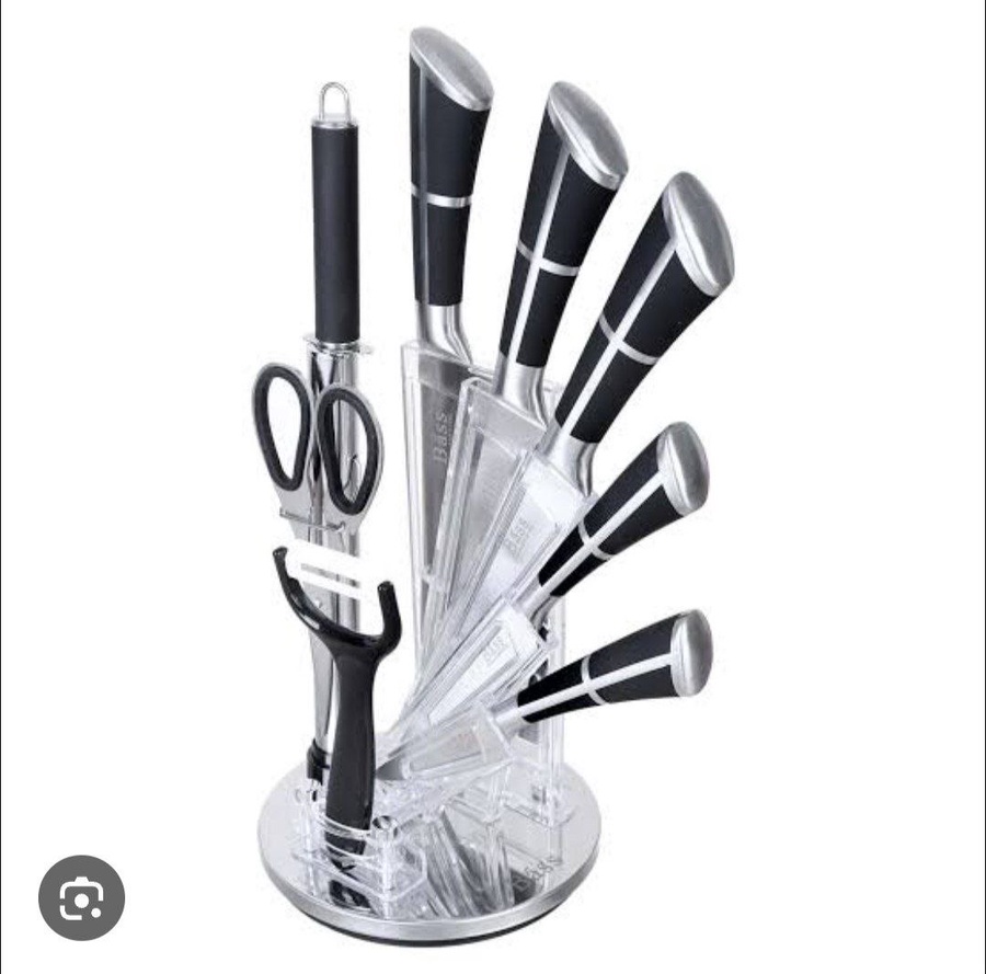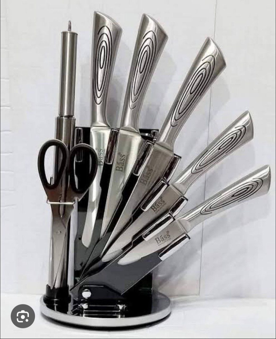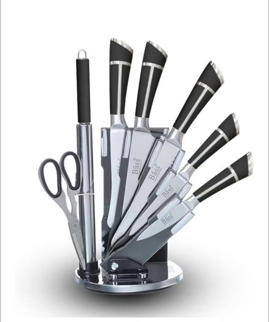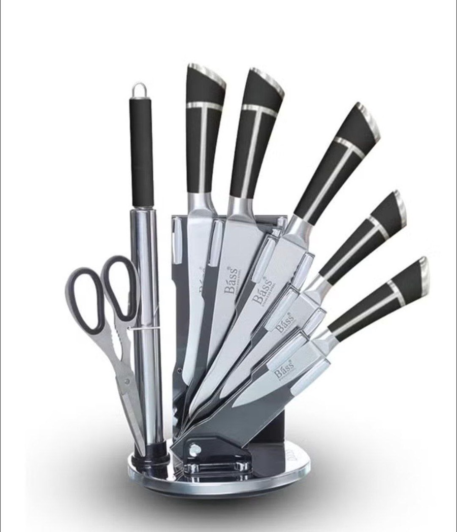 🌓 طقم سكاكين Bass الأصلي – ستاند دوّار فاخر