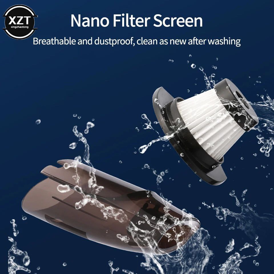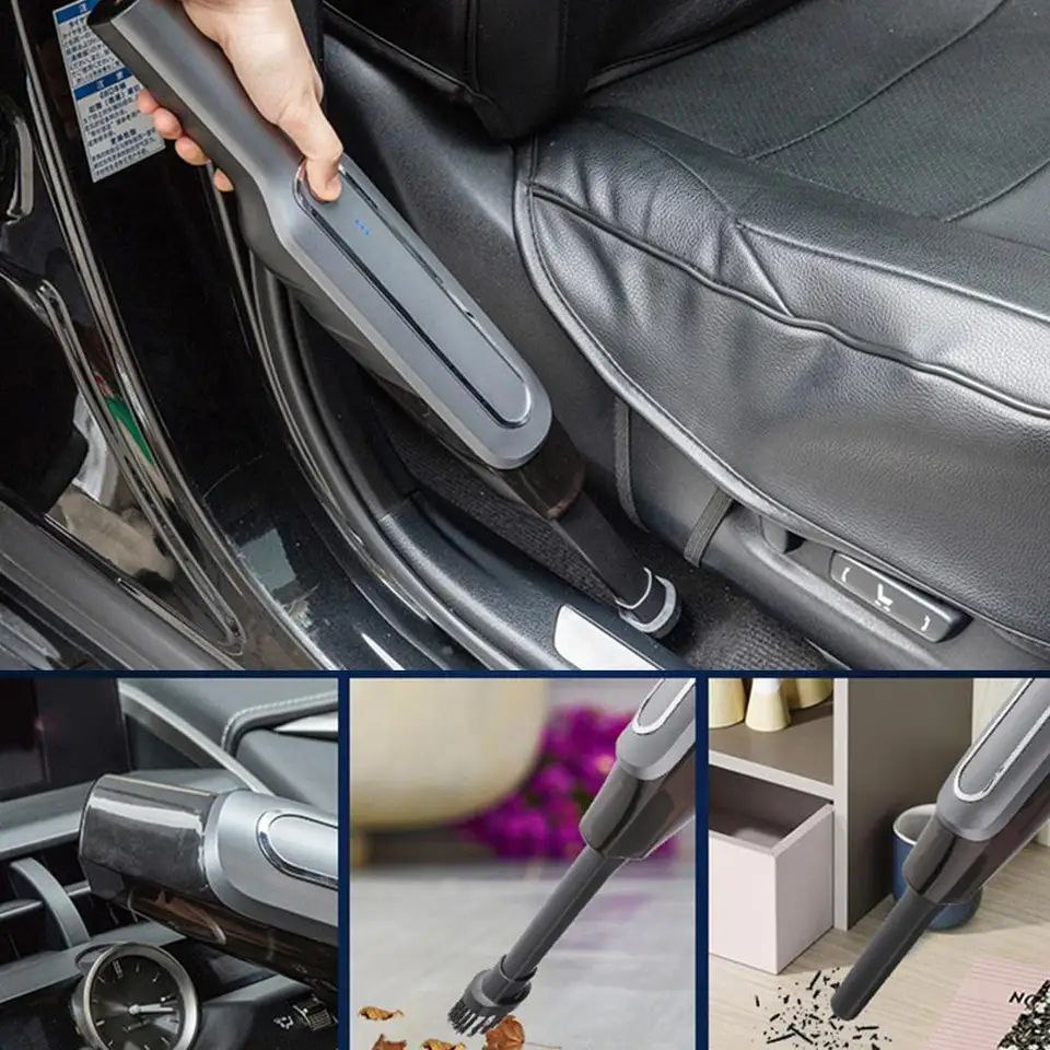 مكنسة محمولة تعمل بالشحن، بقوة شفط وطرد عالية جدًا، مصممة لتنظيف المنزل والسيارة بكل سهولة وبدون تعب.